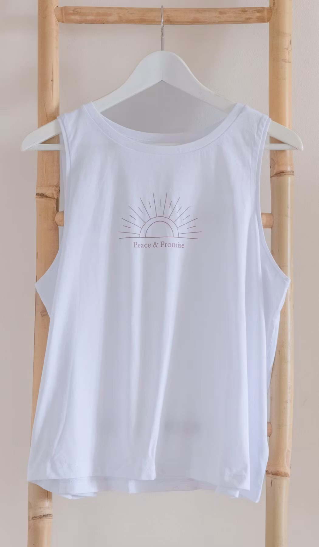Linnet är perfekt att bära till tights på din yogaklass, sarong på stranden eller till jeans i din vardag. På ryggen har vi det snygga peacemärket tryckt i en peach nyans som ger en fin touch till ditt outfit. Njut av den mjukaste av bomull som kommer att göra att du känner dig bekväm hela dagen.